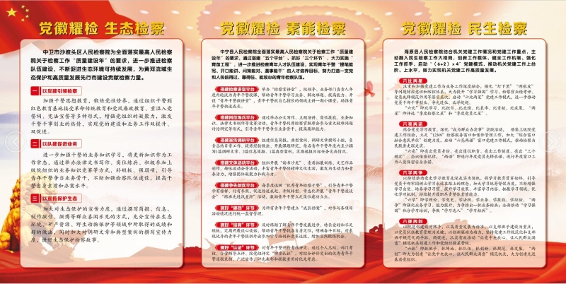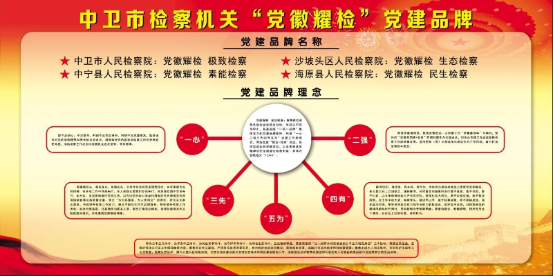 2022年以来,中卫市人民检察坚持“抓党建带队建促业务”工作理念,强化党建引领,创新工作思路,探索创建全市检察机关“党徽耀检”党建品牌,形成以市院为牵引,各基层院“一院一品牌”集体发力的党建品牌矩阵,着力打造“分级创品牌、院院有品牌”的基层党建工作一体化格局。