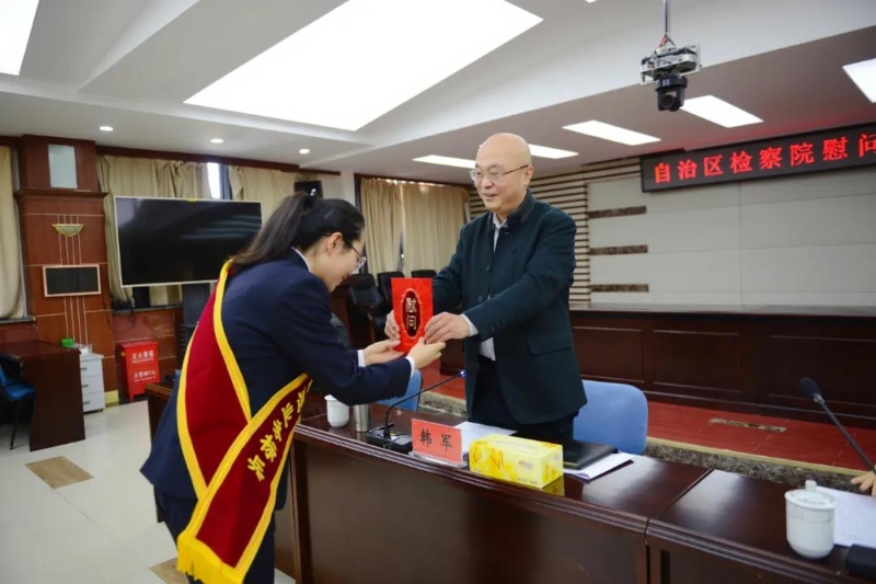 12月25日上午,受宁夏回族自治区人民检察院党组书记、检察长时侠联委托,自治区人民检察院党组成员、副检察长韩军代表自治区人民检察院党组到石嘴山市大武口区人民检察院看望慰问“全国检察机关案件管理业务标兵”蒙娜,并为她送上贺信。自治区人民检察院副检察长戴红霞陪同。