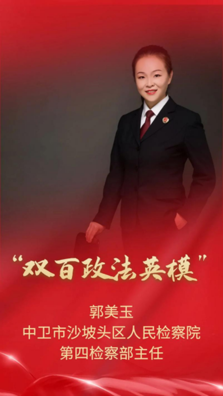 近日,中央政法委印发《关于在全国政法系统学习宣传“双百政法英模”先进事迹的通知》,号召全国政法机关和全体政法干警要以习近平新时代中国特色社会主义思想为指导,深入学习贯彻习近平法治思想,深入学习贯彻党的十九届六中全会精神,认真学习宣传“双百政法英模”的先进事迹,大力营造崇尚英模、学习英模、争当英模的良好风尚,为肩负起新时代政法队伍职责使命激发内在动力、汇聚强大精神力量。中卫市沙坡头区人民检察院第四检察部主任郭美玉获此殊荣。