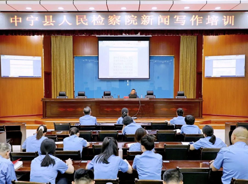 为进一步提高检察干警新闻写作能力和水平,更好地讲好检察故事,弘扬检察“主旋律”,传播法治“正能量”,6月17日,中宁县人民检察院邀请宁夏法治报资深记者翟迎春同志为全院干警作新闻写作培训。院党组书记、检察长张月玲同志及班子成员到场聆听。